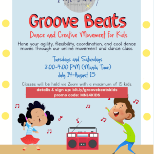 15/04/2020 - 29/05/2020 @ 12:30 am - 4:30 am - 1. Fun Under the Sun Designed for infants and toddlers 10 months to 1.9 years old. Children participate in sensory-rich learning experiences in a warm, loving environment while receiving positive, nurturing guidance from our qualified teachers. Ages: 10 months-1.9 years old Schedule: TTH | 10:00am-11:30am Sessions: 10 Fee: P10,000 2. Move and Groove Children can dance and sing to live music. [...]Read More »